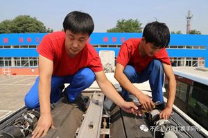 在陽光暴曬下,修理工們的額頭上滲出細密的汗珠,沿著臉頰往下滴。而我站在他們身邊早已大汗淋漓,有些體力不支。“你們這工作真是多重‘烤驗’,室外的高溫就讓人汗流浹背。這發(fā)動機能有100℃,撲面的熱氣更讓人呼吸不暢。還有排氣管的熱風(fēng),一吹到腿上皮膚都燒著痛。”修理工笑著擺了擺手:“加冷媒的工作算是輕松的,要是修空調(diào)冷凝器,就必須爬到車頂,頭頂著烈日,腳下是發(fā)燙的空調(diào)冷凝器,堪比烤‘鐵板燒’、蒸‘桑拿浴’,等修理完感覺自己像洗了個澡,渾身濕透了。”50分鐘后,冷媒加注完畢??尚蘩砉兩砗笥钟腥v車等待修理。“在高溫天,公交車也容易‘中暑’,就是天氣再熱我們也得及時搶修,不然會影響到線路的正常營運。”顧不得體息片刻,他們又開始檢查另一輛車的空鬧系統(tǒng)了。