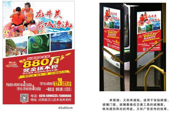 單面透車貼是發(fā)布于公交車內(nèi)下車門處,位置巧妙,乘客下車想不留意都很難。廣告效果不言而喻。