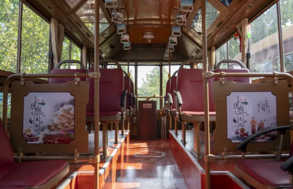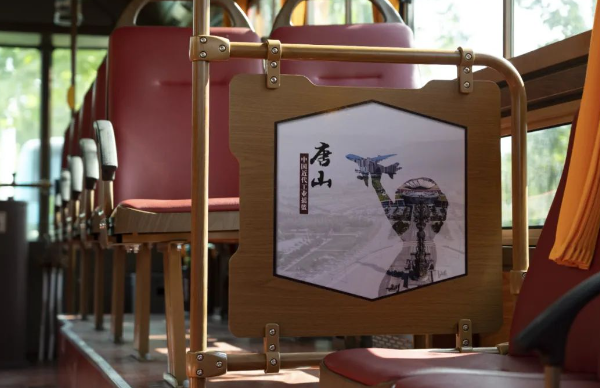 車(chē)身外形與眾不同,車(chē)內(nèi)文化也極具特色。交發(fā)集團(tuán)以“一車(chē)一主題”為原則,打造了工業(yè)歷史、旅游景點(diǎn)、特色美食、戲曲文化等多個(gè)主題文化車(chē)廂。利用燈箱、擋板、拉手等車(chē)內(nèi)設(shè)施,以圖文并茂的形式介紹唐山文化,串起唐山百余年發(fā)展的歷史脈絡(luò)。鐺鐺車(chē)成為了傳遞歷史文化的“流動(dòng)課堂”,整個(gè)車(chē)廂營(yíng)造出濃厚的特色文化氛圍。
