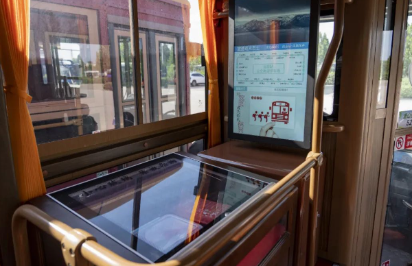 鐺鐺車(chē)上的語(yǔ)音報(bào)站別具一格。系統(tǒng)在預(yù)報(bào)站時(shí),會(huì)對(duì)即將到達(dá)的旅游景點(diǎn)進(jìn)行簡(jiǎn)要介紹,讓乘客賞景觀景先“懂”為快。