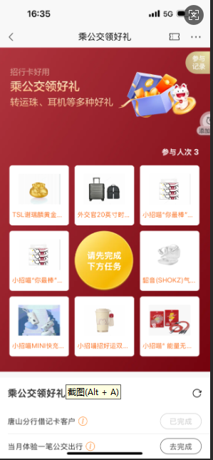 參與路徑:招商銀行App-首頁(yè)-城市服務(wù)(唐山專(zhuān)區(qū))-公交出行